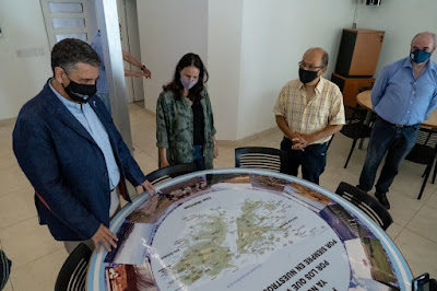 El intendente de Vicente López, Jorge Macri, junto a la responsable del comité social COVID, Soledad Martínez, visitaron el centro y juntos realizaron la firma del trazo final con una mezcla de pintura y tierra traída de Malvinas.